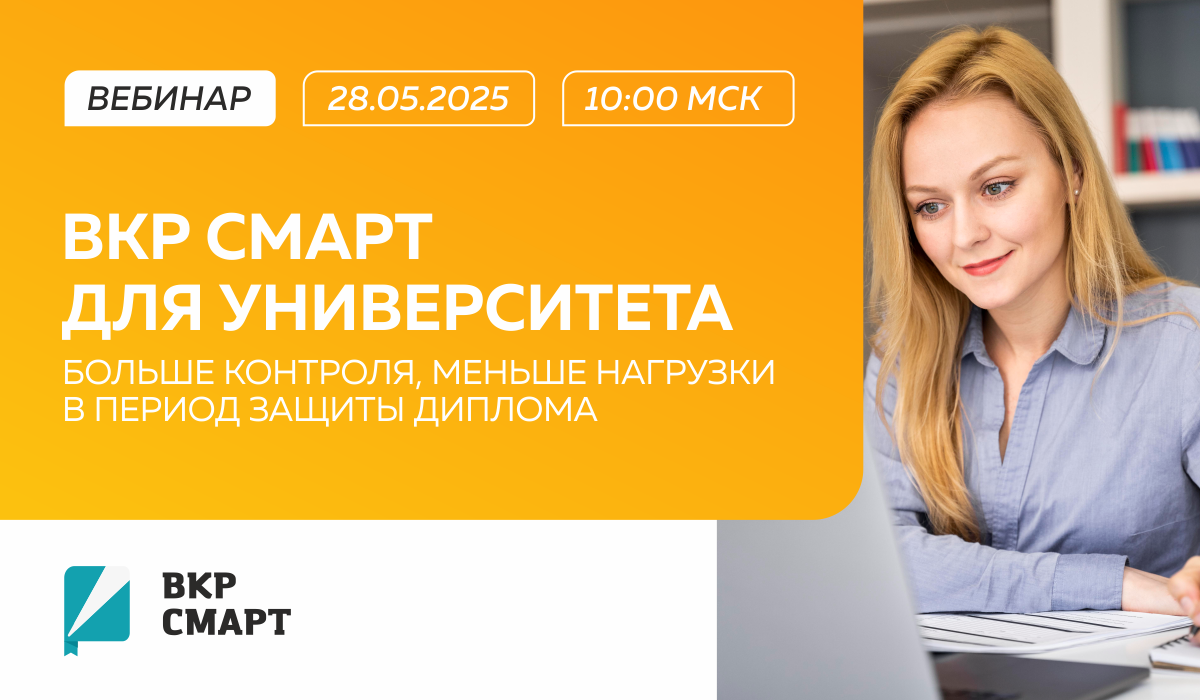28 мая 2025 года | 10:00 МСК Методисты, заведующие кафедрами, члены ГАК, специалисты по обеспечению качества — все сталкиваются с повышенной нагрузкой, рутиной и рисками потери управляемости процесса в период защиты дипломов. Как сделать этот период более прозрачным, организованным и менее трудозатратным? Приглашаем вас на вебинар, где мы покажем, как с помощью платформы ВКР СМАРТ: Регистрация: https://ipr-vebinar.ru/vkr-for-university Для кого: методистам и администраторам, ищущим решения для повышения прозрачности и управляемости процесса проверки ВКР; специалистам по цифровизации образования, внедряющим интеллектуальные платформы в учебный процесс.