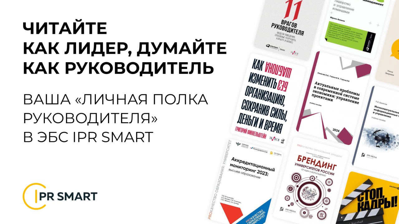 Воспользуйтесь современными знаниями и инструментами, чтобы вести ваш вуз к успеху — с «Личной полкой руководителя» в ЭБС IPR SMART.