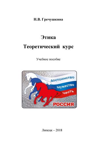 Гречушкина, Н. В. Этика. Теоретический курс : учебное пособие / Н. В. Гречушкина. — Липецк : Липецкий государственный педагогический университет имени П.П. Семёнова-Тян-Шанского, 2018. — 78 c. — ISBN 978-5-88526-864-6. — Текст : электронный // Цифровой образовательный ресурс IPR SMART : [сайт]. — URL: https://www.iprbookshop.ru/101082.html (дата обращения: 17.06.2024). — Режим доступа: для авторизир. пользователей
