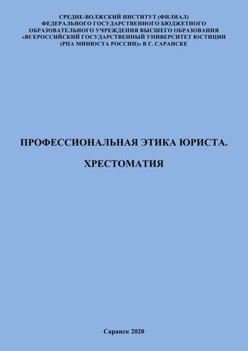 Профессиональная этика юриста. Хрестоматия : учебное пособие / составители Н. Г. Юрченкова, Ю. В. Бурова. — Саранск : Средне-Волжский институт (филиал) ВГУЮ (РПА Минюста России), 2020. — 191 c. — ISBN 978-5-6045294-3-0. — Текст : электронный // Цифровой образовательный ресурс IPR SMART : [сайт]. — URL: https://www.iprbookshop.ru/101247.html (дата обращения: 30.05.2024). — Режим доступа: для авторизир. пользователей