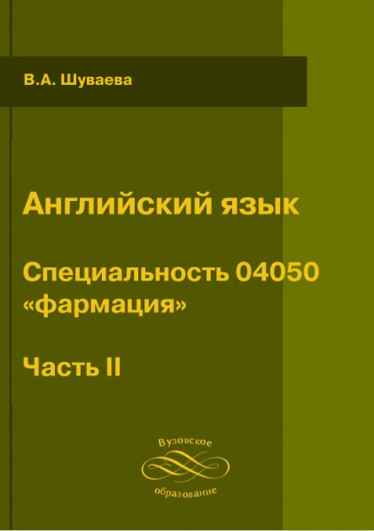 Шуваева, В. А. Английский язык : учебное пособие для практических занятий. (Специальность 04050 − \"фармация\"). Часть II / В. А. Шуваева. — Самара : РЕАВИЗ, 2010. — 48 c. — Текст : электронный // Цифровой образовательный ресурс IPR SMART : [сайт]. — URL: https://www.iprbookshop.ru/10182.html (дата обращения: 27.04.2022). — Режим доступа: для авторизир. пользователей