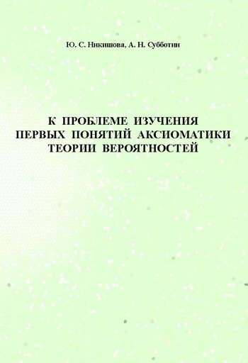 Никишова, Ю. С. К проблеме изучения первых понятий аксиоматики теории вероятностей : учебно-методическое пособие / Ю. С. Никишова, А. Н. Субботин. — Саров : Российский федеральный ядерный центр – ВНИИЭФ, 2018. — 62 c. — ISBN 978-5-9515-0391-6. — Текст : электронный // Цифровой образовательный ресурс IPR SMART : [сайт]. — URL: https://www.iprbookshop.ru/101920.html (дата обращения: 04.10.2024). — Режим доступа: для авторизир. пользователей