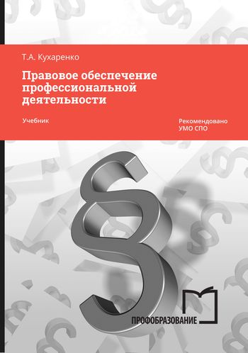 Кухаренко, Т. А. Правовое обеспечение профессиональной деятельности : учебник для СПО / Т. А. Кухаренко. — 2-е изд. — Саратов : Профобразование, 2024. — 199 c. — ISBN 978-5-4488-1997-1. — Текст : электронный // Цифровой образовательный ресурс IPR SMART : [сайт]. — URL: https://www.iprbookshop.ru/138459.html (дата обращения: 19.04.2024). — Режим доступа: для авторизир. пользователей