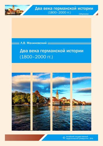 Малиновский, Л. В. Два века германской истории (1800–2000 гг.) : учебное пособие / Л. В. Малиновский. — Барнаул : Алтайский государственный педагогический университет, 2016. — 52 c. — ISBN 978-5-88210-823-5. — Текст : электронный // Цифровой образовательный ресурс IPR SMART : [сайт]. — URL: https://www.iprbookshop.ru/102721.html (дата обращения: 20.07.2023). — Режим доступа: для авторизир. пользователей