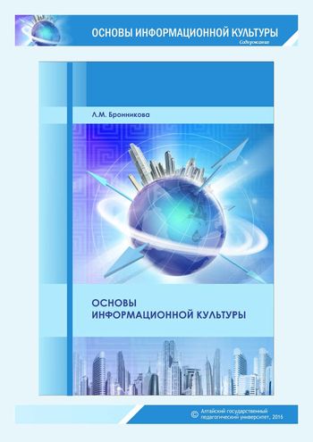 Бронникова, Л. М. Основы информационной культуры : учебное пособие / Л. М. Бронникова. — Барнаул : Алтайский государственный педагогический университет, 2016. — 67 c. — ISBN 978-5-88210-811-2. — Текст : электронный // Цифровой образовательный ресурс IPR SMART : [сайт]. — URL: https://www.iprbookshop.ru/102748.html (дата обращения: 04.08.2023). — Режим доступа: для авторизир. пользователей
