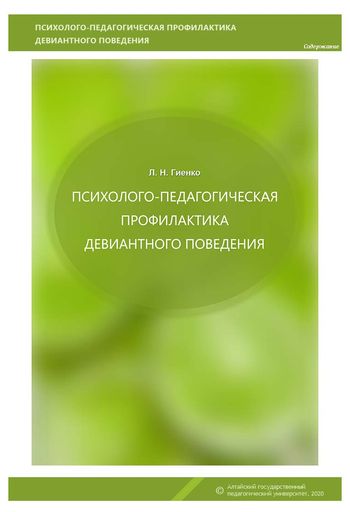 Гиенко, Л. Н. Психолого-педагогическая профилактика девиантного поведения : учебное пособие / Л. Н. Гиенко. — Барнаул : Алтайский государственный педагогический университет, 2020. — 100 c. — ISBN 978-5-88210-963-8. — Текст : электронный // Цифровой образовательный ресурс IPR SMART : [сайт]. — URL: https://www.iprbookshop.ru/102766.html (дата обращения: 26.09.2024). — Режим доступа: для авторизир. пользователей