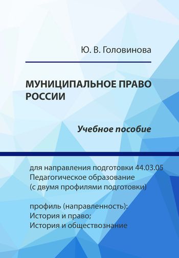 Головинова Ю.В. Муниципальное право России : учебное пособие / Головинова Ю.В.. — Барнаул : Изд-во «Петров», 2019. — 116 c. — ISBN 978-5-6043739-1-0. — Текст : электронный // Цифровой образовательный ресурс IPR SMART : [сайт]. — URL: https://www.iprbookshop.ru/102840.html (дата обращения: 05.12.2025). — Режим доступа: для авторизир. пользователей