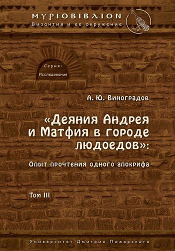 Виноградов, А. Ю. «Деяния Андрея и Матфия в городе людоедов»: опыт прочтения одного апокрифа / А. Ю. Виноградов ; под редакцией А. Ю. Виноградова, В. П. Кузенкова. — Москва : Русский Фонд Содействия Образованию и Науке, 2014. — 208 c. — ISBN 978-5-91244-085-4. — Текст : электронный // Цифровой образовательный ресурс IPR SMART : [сайт]. — URL: https://www.iprbookshop.ru/103172.html (дата обращения: 15.06.2023). — Режим доступа: для авторизир. пользователей