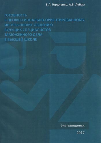 Гордиенко, Е. А. Готовность к профессионально-ориентированному иноязычному общению будущих специалистов таможенного дела в высшей школе : монография / Е. А. Гордиенко, А. В. Лейфа. — Благовещенск : Амурский государственный университет, 2017. — 148 c. — ISBN 978-5-93493-305-1. — Текст : электронный // Цифровой образовательный ресурс IPR SMART : [сайт]. — URL: https://www.iprbookshop.ru/103855.html (дата обращения: 14.02.2024). — Режим доступа: для авторизир. пользователей