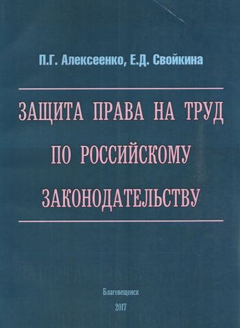 Алексеенко, П. Г. Защита права на труд по российскому законодательству : монография / П. Г. Алексеенко, Е. Д. Свойкина. — Благовещенск : Амурский государственный университет, 2017. — 88 c. — ISBN 978-5-93493-300-6. — Текст : электронный // Цифровой образовательный ресурс IPR SMART : [сайт]. — URL: https://www.iprbookshop.ru/103860.html (дата обращения: 07.03.2024). — Режим доступа: для авторизир. пользователей