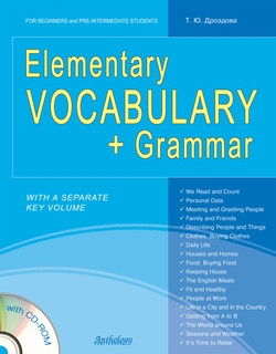 Учебное пособие «Elementary Vocabulary + Grammar» предназначено для людей с начальным уровнем подготовки. Отличительной особенностью издания является «параллельное» изучение лексики и грамматики. Грамматические пояснения даются на русском языке, в простой и доступной форме и располагаются именно там, где лексический материал главы диктует необходимость использования данной грамматической конструкции. К пособию прилагаются ответы-ключи, изданные отдельной книгой, что позволяет с успехом использовать его для самостоятельной работы. Современный материал и оформление книги делают работу с пособием приятной и эффективной.