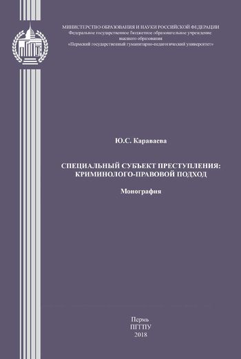 Караваева, Ю. С. Специальный субъект преступления: криминолого-правовой подход : монография / Ю. С. Караваева. — Пермь : Пермский государственный гуманитарно-педагогический университет, 2018. — 192 c. — ISBN 978-5-85218-952-3. — Текст : электронный // Цифровой образовательный ресурс IPR SMART : [сайт]. — URL: https://www.iprbookshop.ru/104177.html (дата обращения: 08.04.2024). — Режим доступа: для авторизир. пользователей