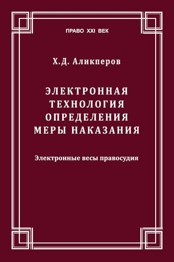 Аликперов, Х. Д. Электронная технология определения меры наказания («Электронные весы правосудия») / Х. Д. Аликперов. — Санкт-Петербург : Юридический центр Пресс, 2020. — 170 c. — ISBN 978-5-94201-806-1. — Текст : электронный // Цифровой образовательный ресурс IPR SMART : [сайт]. — URL: https://www.iprbookshop.ru/104302.html (дата обращения: 13.12.2023). — Режим доступа: для авторизир. пользователей