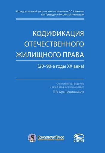 Кодификация отечественного жилищного права (20–90-е годы ХХ века) / под редакцией П. В. Крашенинникова, составители П. В. Крашенинников, Е. В. Бадулина. — Москва : Статут, 2020. — 368 c. — ISBN 978-5-8354-1612-7. — Текст : электронный // Цифровой образовательный ресурс IPR SMART : [сайт]. — URL: https://www.iprbookshop.ru/104620.html (дата обращения: 17.10.2023). — Режим доступа: для авторизир. пользователей