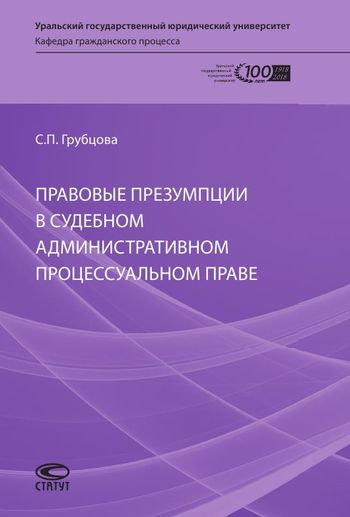 Грубцова, С. П. Правовые презумпции в судебном административном процессуальном праве : монография / С. П. Грубцова. — Москва : Статут, 2020. — 233 c. — ISBN 978-5-8354-1681-3. — Текст : электронный // Цифровой образовательный ресурс IPR SMART : [сайт]. — URL: https://www.iprbookshop.ru/104630.html (дата обращения: 15.09.2024). — Режим доступа: для авторизир. пользователей