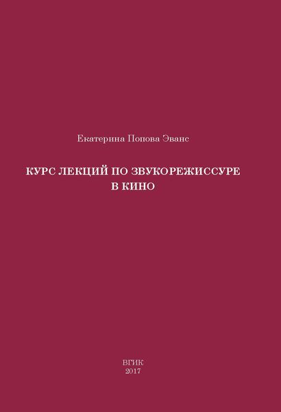 Эванс, Е. Д. Курс лекций по звукорежиссуре в кино / Попова Е. Д. Эванс. — Москва : Всероссийский государственный университет кинематографии имени С.А. Герасимова (ВГИК), 2017. — 292 c. — ISBN 978-5-87149-213-0. — Текст : электронный // Цифровой образовательный ресурс IPR SMART : [сайт]. — URL: https://www.iprbookshop.ru/105116.html (дата обращения: 19.04.2024). — Режим доступа: для авторизир. пользователей
