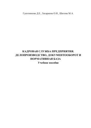 Кадровая служба предприятия. Делопроизводство, документооборот и нормативная база. Учебное пособие