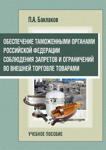 Баклаков, П. А. Обеспечение таможенными органами Российской Федерации соблюдения запретов и ограничений во внешней торговле товарами : учебное пособие / П. А. Баклаков. — Москва : Российская таможенная академия, 2019. — 220 c. — ISBN 978-5-9590-1133-8. — Текст : электронный // Цифровой образовательный ресурс IPR SMART : [сайт]. — URL: https://www.iprbookshop.ru/105686.html (дата обращения: 13.09.2024). — Режим доступа: для авторизир. пользователей