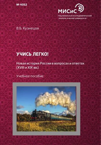 Кузнецов, В. Б. Учись легко! Новая история России в вопросах и ответах (XVIII и XIX вв.) : учебное пособие / В. Б. Кузнецов. — Москва : Издательский Дом МИСиС, 2020. — 97 c. — ISBN 978-5-907226-78-4. — Текст : электронный // Цифровой образовательный ресурс IPR SMART : [сайт]. — URL: https://www.iprbookshop.ru/106743.html (дата обращения: 22.12.2023). — Режим доступа: для авторизир. пользователей