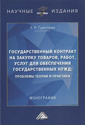Григорян, Т. Р. Государственный контракт на закупку товаров, работ, услуг для обеспечения государственных нужд: проблемы теории и практики : монография / Т. Р. Григорян. — 2-е изд. — Москва : Дашков и К, 2021. — 210 c. — ISBN 978-5-394-04390-1. — Текст : электронный // Цифровой образовательный ресурс IPR SMART : [сайт]. — URL: https://www.iprbookshop.ru/107776.html (дата обращения: 07.08.2023). — Режим доступа: для авторизир. пользователей