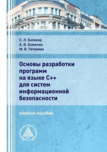 Беляков, С. Л. Основы разработки программ на языке С++ для систем информационной безопасности : учебное пособие / С. Л. Беляков, А. В. Боженюк, М. В. Петряева. — Ростов-на-Дону, Таганрог : Издательство Южного федерального университета, 2020. — 152 c. — ISBN 978-5-9275-3521-7. — Текст : электронный // Цифровой образовательный ресурс IPR SMART : [сайт]. — URL: https://www.iprbookshop.ru/107970.html (дата обращения: 27.12.2024). — Режим доступа: для авторизир. пользователей