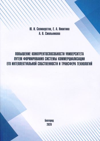 Селиверстов Ю.И. Повышение конкурентоспособности университета путем формирования системы коммерциализации его интеллектуальной собственности и трансфера технологий : монография / Селиверстов Ю.И., Никитина Е.А., Смольникова А.В.. — Белгород : Белгородский государственный технологический университет им. В.Г. Шухова, ЭБС АСВ, 2020. — 76 c. — ISBN 978-5-361-00787-5. — Текст : электронный // Цифровой образовательный ресурс IPR SMART : [сайт]. — URL: https://www.iprbookshop.ru/110193.html (дата обращения: 05.12.2025). — Режим доступа: для авторизир. пользователей