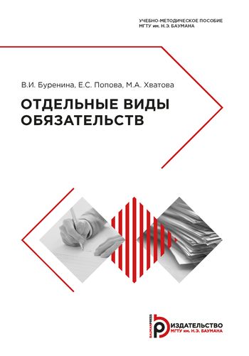 Буренина, В. И. Отдельные виды обязательств : учебно-методическое пособие / В. И. Буренина, Е. С. Попова, М. А. Хватова. — Москва : Московский государственный технический университет имени Н.Э. Баумана, 2019. — 60 c. — ISBN 978-5-7038-5115-9. — Текст : электронный // Цифровой образовательный ресурс IPR SMART : [сайт]. — URL: https://www.iprbookshop.ru/110696.html (дата обращения: 16.07.2024). — Режим доступа: для авторизир. пользователей