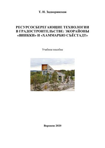 Задворянская Т.И. Ресурсосберегающие технологии в градостроительстве: экорайоны «Виикки» и «Хаммарбю Съёстадт» : учебное пособие / Задворянская Т.И.. — Воронеж : Воронежский государственный технический университет, ЭБС АСВ, 2020. — 80 c. — ISBN 978-5-7731-0864-1. — Текст : электронный // Цифровой образовательный ресурс IPR SMART : [сайт]. — URL: https://www.iprbookshop.ru/111484.html (дата обращения: 05.12.2025). — Режим доступа: для авторизир. пользователей