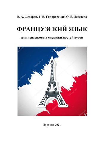Федоров, В. А. Французский язык для неязыковых специальностей вузов : учебное пособие / В. А. Федоров, Т. В. Гиляровская, О. В. Лебедева ; под редакцией В. А. Федорова. — 2-е изд. — Воронеж : Воронежский государственный технический университет, ЭБС АСВ, 2021. — 144 c. — ISBN 978-5-7731-0930-3. — Текст : электронный // Цифровой образовательный ресурс IPR SMART : [сайт]. — URL: https://www.iprbookshop.ru/111492.html (дата обращения: 27.09.2023). — Режим доступа: для авторизир. пользователей