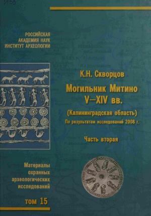 Скворцов, К. Н. Могильник Митино V - XIV вв. Калининградская область. Материалы исследований 2008 г. Часть вторая : монография / К. Н. Скворцов. — Москва : Институт Археологии РАН, 2010. — 806 c. — ISBN 978-5-87049-744-0. — Текст : электронный // Цифровой образовательный ресурс IPR SMART : [сайт]. — URL: https://www.iprbookshop.ru/11479.html (дата обращения: 18.08.2025). — Режим доступа: для авторизир. пользователей