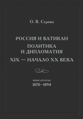 Серова, О. В. Россия и Ватикан. Политика и дипломатия. XIX – начало XX века. Кн. 2: 1870–1894 / О. В. Серова. — 2-е изд. — Москва : Издательский Дом ЯСК, 2021. — 1032 c. — ISBN 978-5-907290-34-1 (кн. 2), 978-5-6041006-8-4. — Текст : электронный // Цифровой образовательный ресурс IPR SMART : [сайт]. — URL: https://www.iprbookshop.ru/115272.html (дата обращения: 05.05.2023). — Режим доступа: для авторизир. пользователей