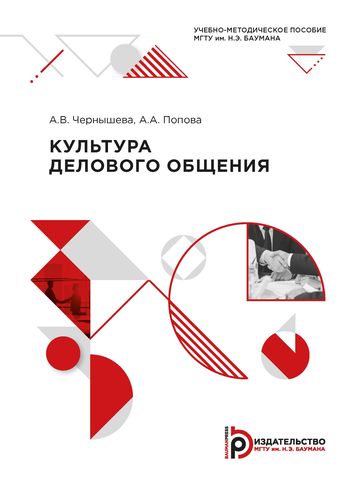 Чернышева, А. В. Культура делового общения : учебно-методическое пособие / А. В. Чернышева, А. А. Попова. — Москва : Московский государственный технический университет имени Н.Э. Баумана, 2020. — 60 c. — ISBN 978-5-7038-5365-8. — Текст : электронный // Цифровой образовательный ресурс IPR SMART : [сайт]. — URL: https://www.iprbookshop.ru/115336.html (дата обращения: 13.05.2024). — Режим доступа: для авторизир. пользователей