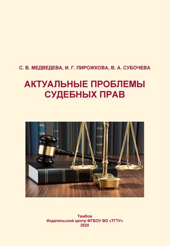 Медведева С.В. Актуальные проблемы судебных прав : учебное пособие / Медведева С.В., Пирожкова И.Г., Субочева В.А.. — Тамбов : Тамбовский государственный технический университет, ЭБС АСВ, 2020. — 80 c. — ISBN 978-5-8265-2242-4. — Текст : электронный // Цифровой образовательный ресурс IPR SMART : [сайт]. — URL: https://www.iprbookshop.ru/115706.html (дата обращения: 20.12.2025). — Режим доступа: для авторизир. пользователей