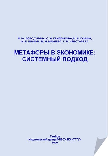 Метафоры в экономике: системный подход : монография / Н. Ю. Бородулина, О. А. Гливенкова, Н. А. Гунина [и др.]. — Тамбов : Тамбовский государственный технический университет, ЭБС АСВ, 2020. — 271 c. — ISBN 978-5-8265-2268-4. — Текст : электронный // Цифровой образовательный ресурс IPR SMART : [сайт]. — URL: https://www.iprbookshop.ru/115767.html (дата обращения: 14.10.2023). — Режим доступа: для авторизир. пользователей