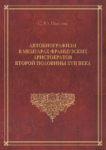 Павлова, С. Ю. Автобиографизм в мемуарах французских аристократов второй половины XVII века / С. Ю. Павлова. — Саратов : Издательство Саратовского университета, 2020. — 364 c. — ISBN 978-5-292-04661-5. — Текст : электронный // Цифровой образовательный ресурс IPR SMART : [сайт]. — URL: https://www.iprbookshop.ru/116323.html (дата обращения: 18.04.2023). — Режим доступа: для авторизир. пользователей
