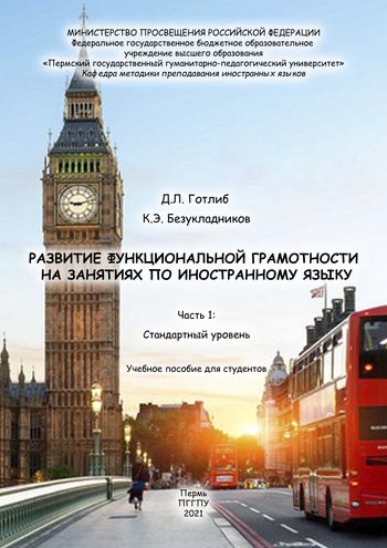 Готлиб Д.Л. Развитие функциональной грамотности на занятиях по иностранному языку. Ч.1. Стандартный уровень : учебное пособие для студентов / Готлиб Д.Л., Безукладников К.Э.. — Пермь : Пермский государственный гуманитарно-педагогический университет, 2021. — 50 c. — ISBN 978-5-907287-97-6. — Текст : электронный // Цифровой образовательный ресурс IPR SMART : [сайт]. — URL: https://www.iprbookshop.ru/116376.html (дата обращения: 05.12.2025). — Режим доступа: для авторизир. пользователей