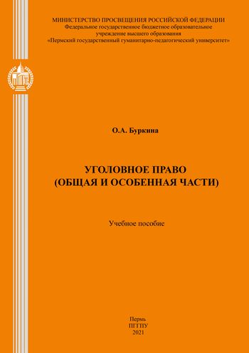 Буркина О.А. Уголовное право (Общая и Особенная части) : учебное пособие / Буркина О.А.. — Пермь : Пермский государственный гуманитарно-педагогический университет, 2021. — 215 c. — ISBN 978-5-907459-05-2. — Текст : электронный // Цифровой образовательный ресурс IPR SMART : [сайт]. — URL: https://www.iprbookshop.ru/116378.html (дата обращения: 20.12.2025). — Режим доступа: для авторизир. пользователей