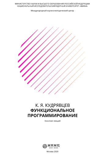 Кудрявцев, К. Я. Функциональное программирование : конспект лекций / К. Я. Кудрявцев. — Москва : Национальный исследовательский ядерный университет «МИФИ», 2020. — 111 c. — ISBN 978-5-7262-2672-9. — Текст : электронный // Цифровой образовательный ресурс IPR SMART : [сайт]. — URL: https://www.iprbookshop.ru/116429.html (дата обращения: 06.11.2023). — Режим доступа: для авторизир. пользователей