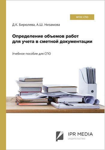 Бирюлева, Д. К. Определение объемов работ для учета в сметной документации : учебное пособие для СПО / Д. К. Бирюлева, А. Ш. Низамова. — Москва : Ай Пи Ар Медиа, 2022. — 109 c. — ISBN 978-5-4497-1489-3. — Текст : электронный // Цифровой образовательный ресурс IPR SMART : [сайт]. — URL: https://www.iprbookshop.ru/116472.html (дата обращения: 08.09.2022). — Режим доступа: для авторизир. пользователей