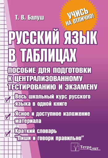 Балуш Т.В. Русский язык в таблицах : пособие для подготовки к централизованному тестированию и экзамену / Балуш Т.В.. — Минск : Тетралит, 2020. — 208 c. — ISBN 978-985-7171-46-0. — Текст : электронный // Цифровой образовательный ресурс IPR SMART : [сайт]. — URL: https://www.iprbookshop.ru/117486.html (дата обращения: 06.12.2025). — Режим доступа: для авторизир. пользователей