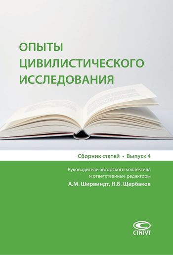 Опыты цивилистического исследования. Вып. 4 : сборник статей / Адам Ю. А. (Ефремова), В. Т. Карабахцян, С. Г. Ким [и др.] ; под редакцией А. М. Ширвиндта, Н. Б. Щербакова. — Москва : Статут, 2021. — 490 c. — ISBN 978-5-8354-1749-0. — Текст : электронный // Цифровой образовательный ресурс IPR SMART : [сайт]. — URL: https://www.iprbookshop.ru/117539.html (дата обращения: 10.04.2024). — Режим доступа: для авторизир. пользователей