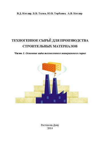 Техногенное сырьё для производства строительных материалов. В 2 частях. Ч.1 : учебное пособие / В. Д. Котляр, Б. В. Талпа, Ю. В. Терёхина, А. В. Котляр. — Ростов-на-Дону : Ростовский государственный строительный университет, 2014. — 130 c. — Текст : электронный // Цифровой образовательный ресурс IPR SMART : [сайт]. — URL: https://www.iprbookshop.ru/117849.html (дата обращения: 31.03.2025). — Режим доступа: для авторизир. пользователей