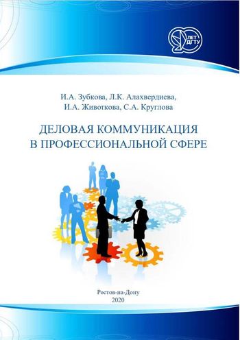 Деловая коммуникация в профессиональной сфере : учебное пособие / И. А. Зубкова, Л. К. Алахвердиева, И. А. Животкова, С. А. Круглова. — Ростов-на-Дону : Донской государственный технический университет, 2020. — 143 c. — ISBN 978-5-7890-1825-5. — Текст : электронный // Цифровой образовательный ресурс IPR SMART : [сайт]. — URL: https://www.iprbookshop.ru/118035.html (дата обращения: 05.10.2023). — Режим доступа: для авторизир. пользователей