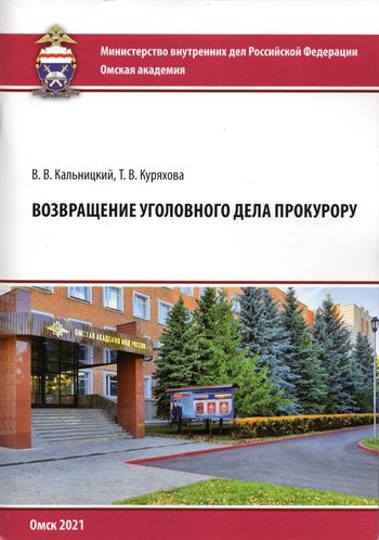 Кальницкий, В. В. Возвращение уголовного дела прокурору : учебное пособие / В. В. Кальницкий, Т. В. Куряхова. — Омск : Омская академия МВД России, 2021. — 132 c. — ISBN 978-5-88651-760-6. — Текст : электронный // Цифровой образовательный ресурс IPR SMART : [сайт]. — URL: https://www.iprbookshop.ru/119017.html (дата обращения: 03.07.2023). — Режим доступа: для авторизир. пользователей