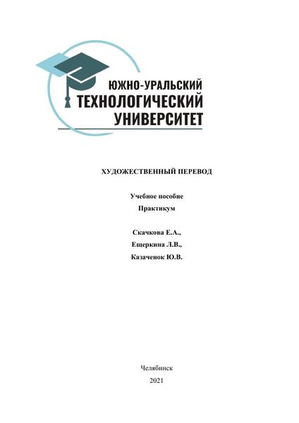 Скачкова, Е. А. Пособие по художественному переводу: учебное пособие : практикум / Е. А. Скачкова, Л. В. Ещеркина, Ю. В. Казаченок. — Челябинск : Южно-Уральский технологический университет, 2021. — 81 c. — ISBN 978-5-6046573-5-5. — Текст : электронный // Цифровой образовательный ресурс IPR SMART : [сайт]. — URL: https://www.iprbookshop.ru/119095.html (дата обращения: 30.08.2023). — Режим доступа: для авторизир. пользователей