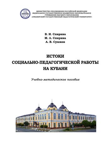Спирина, В. И. Истоки социально-педагогической работы на Кубани : учебно-методическое пособие / В. И. Спирина, М. Л. Спирина, А. В. Сушков. — Армавир : Армавирский государственный педагогический университет, 2021. — 88 c. — ISBN 978-5-89971-867-0. — Текст : электронный // Цифровой образовательный ресурс IPR SMART : [сайт]. — URL: https://www.iprbookshop.ru/119455.html (дата обращения: 01.04.2024). — Режим доступа: для авторизир. пользователей