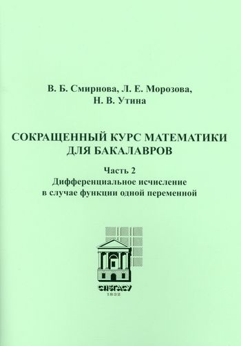 Смирнова В.Б. Сокращенный курс математики для бакалавров. В 3 частях. Ч.2. Дифференциальное исчисление в случае функции одной переменной : учебное пособие / Смирнова В.Б., Морозова Л.Е., Утина Н.В.. — Санкт-Петербург : Санкт-Петербургский государственный архитектурно-строительный университет, ЭБС АСВ, 2021. — 72 c. — ISBN 978-5-9227-0910-1, 978-5-9227-1166-1. — Текст : электронный // Цифровой образовательный ресурс IPR SMART : [сайт]. — URL: https://www.iprbookshop.ru/119666.html (дата обращения: 05.12.2025). — Режим доступа: для авторизир. пользователей