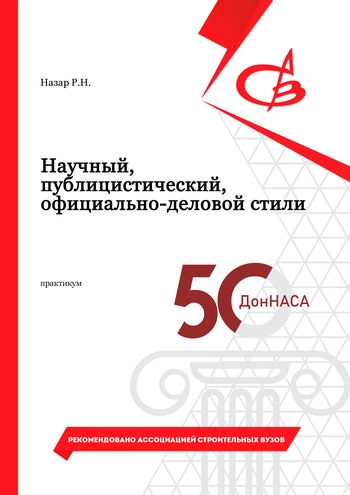Назар, Р. Н. Научный, публицистический, официально-деловой стили : практикум для самостоятельной работы по дисциплине «Русский язык и культура речи» / Р. Н. Назар. — Макеевка : Донбасская национальная академия строительства и архитектуры, ЭБС АСВ, 2021. — 132 c. — Текст : электронный // Цифровой образовательный ресурс IPR SMART : [сайт]. — URL: https://www.iprbookshop.ru/120029.html (дата обращения: 08.04.2024). — Режим доступа: для авторизир. пользователей