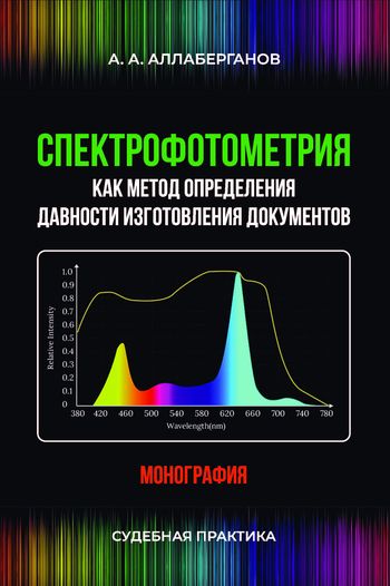 Аллаберганов, А. А. Спектрофотометрия как метод определения давности изготовления документов. Судебная практика : монография / А. А. Аллаберганов. — Москва : Знание-М, 2022. — 110 c. — ISBN 978-5-907345-81-2. — Текст : электронный // Цифровой образовательный ресурс IPR SMART : [сайт]. — URL: https://www.iprbookshop.ru/120426.html (дата обращения: 25.06.2023). — Режим доступа: для авторизир. пользователей