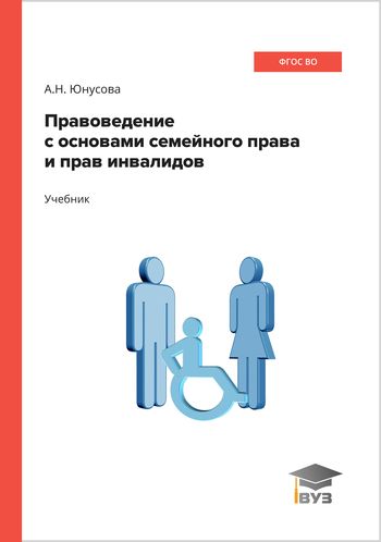 Юнусова, А. Н. Правоведение с основами семейного права и прав инвалидов : учебник / А. Н. Юнусова. — Саратов : Вузовское образование, 2022. — 160 c. — ISBN 978-5-4487-0823-7. — Текст : электронный // Цифровой образовательный ресурс IPR SMART : [сайт]. — URL: https://www.iprbookshop.ru/120565.html (дата обращения: 18.07.2024). — Режим доступа: для авторизир. пользователей